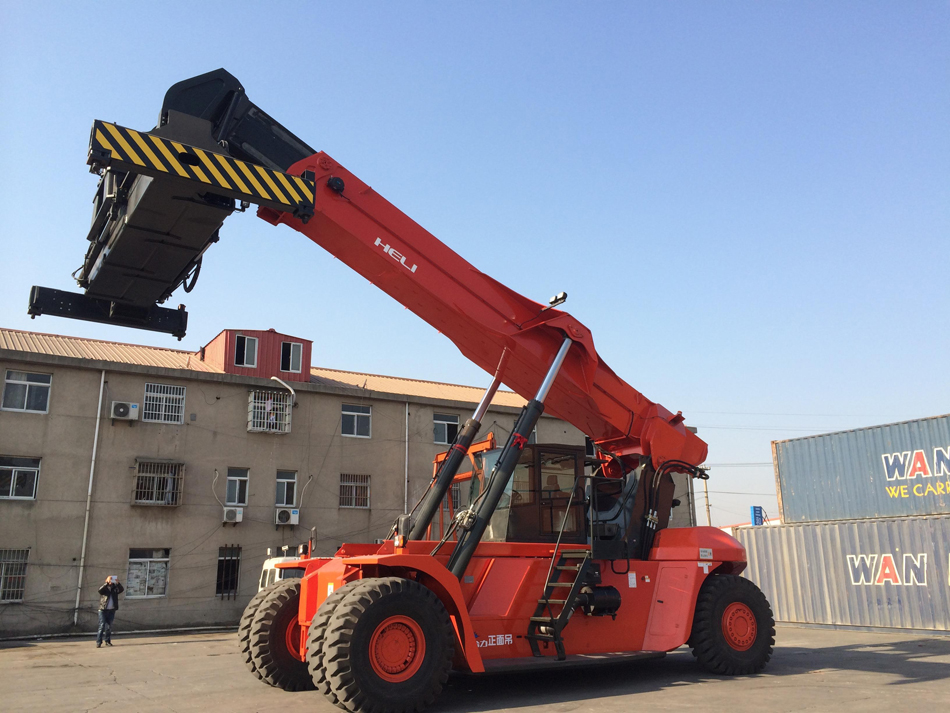 正面吊專門為20英尺和40英尺國際集裝箱而設(shè)計的,主要用于集裝箱的堆疊和碼頭、堆廠內(nèi)的水平運輸,與叉車相比,它具有機動靈活,操作方便,穩(wěn)定性好,輪壓較底,堆碼層數(shù)高,堆場利用率高等優(yōu)點??蛇M行跨箱作業(yè)。特別適用于中小港口,鐵路中專站和公路中專站的集裝箱裝卸,也可在大型集裝箱碼頭作為輔助設(shè)備來使用。