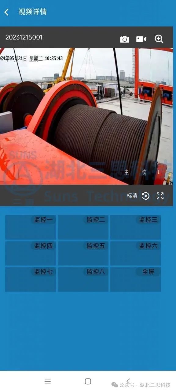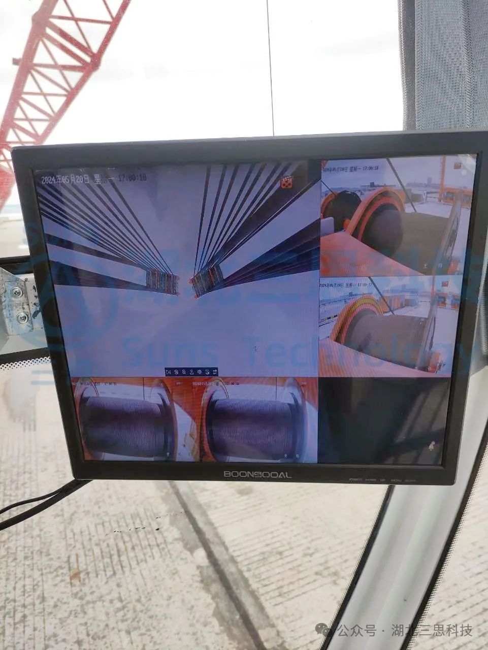 視頻監(jiān)控系統(tǒng)監(jiān)測桅桿吊的起升卷揚(yáng)、變幅卷揚(yáng)、吊裝區(qū)域,視頻顯示器放置于駕駛室中,給駕駛員帶來更加寬廣的操作視野,提高了桅桿吊操作便捷性。