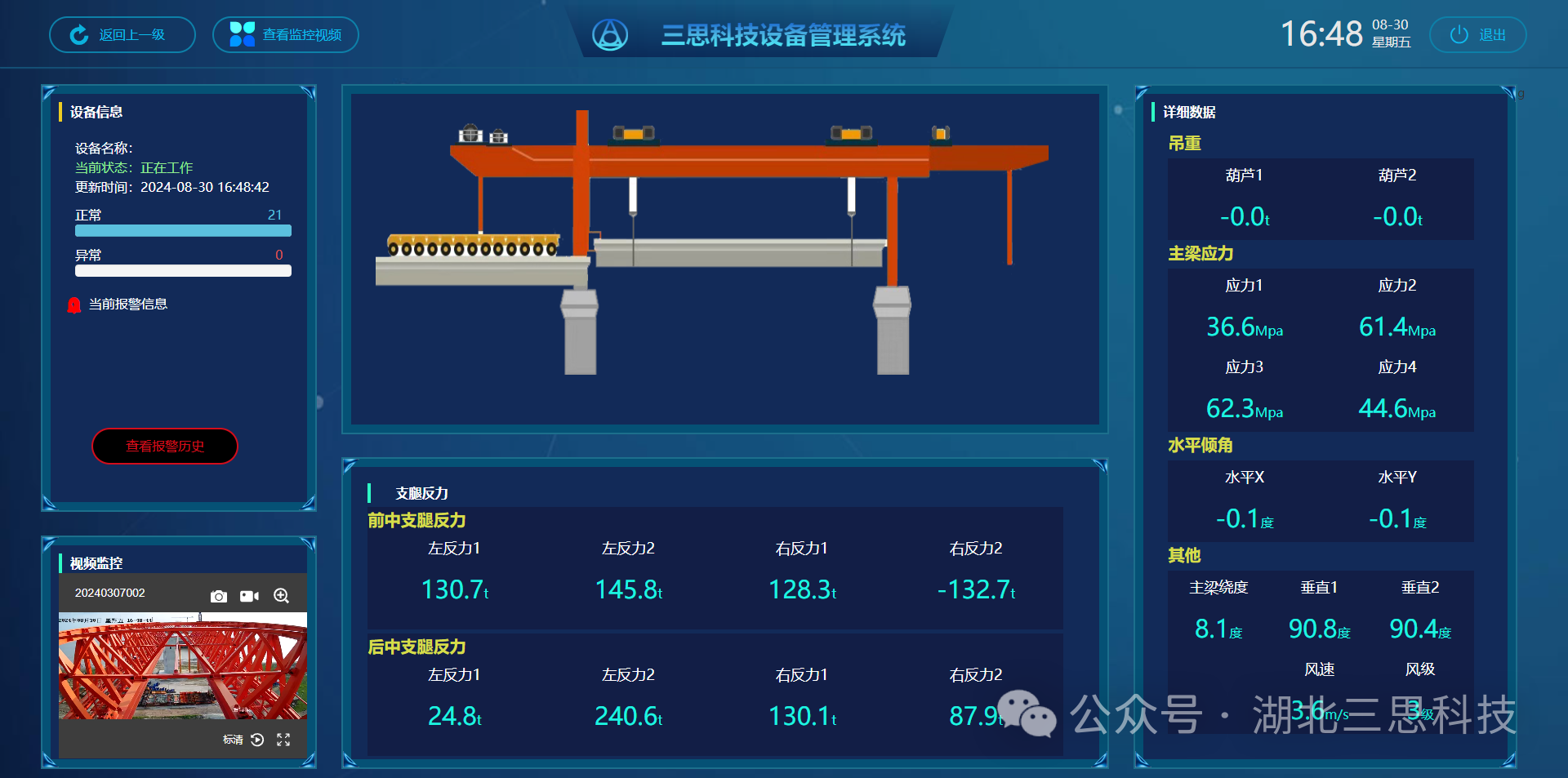 在設(shè)備4個(gè)承重支腿等重要部位、模板工作區(qū)域約8處,均設(shè)置??低暩咔鍞z像頭,做到對(duì)工作環(huán)境的實(shí)時(shí)監(jiān)測(cè)。