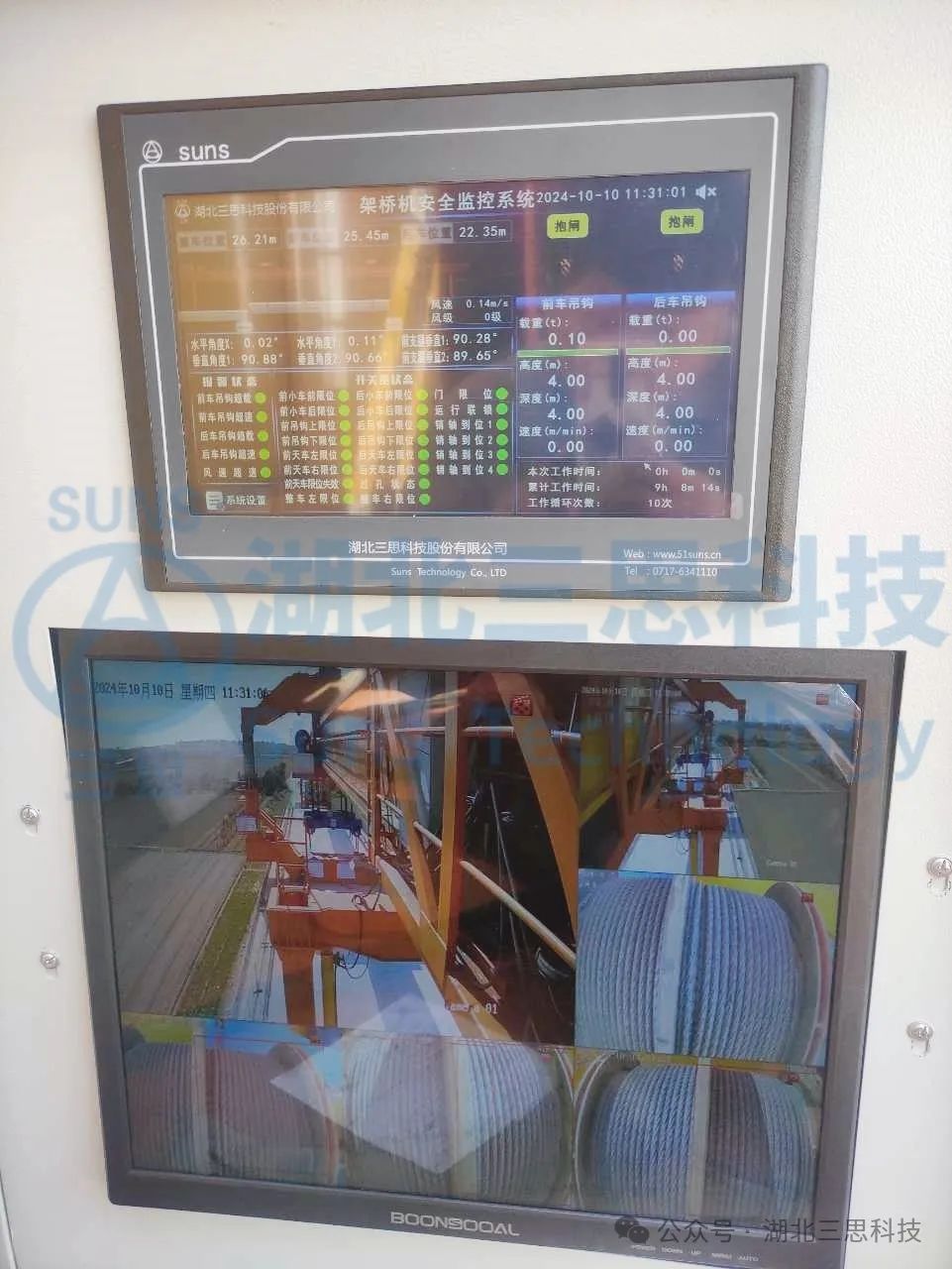 本次由湖北三思科技參與的起重機(jī)安全監(jiān)控系統(tǒng)的設(shè)計(jì)、安裝的設(shè)備是一臺1000噸的單導(dǎo)梁架橋機(jī),在常規(guī)架橋機(jī)安全管理系統(tǒng)的功能上,本系統(tǒng)增加了重大安全隱患報(bào)警、掃碼解鎖等功能,屬于行業(yè)類首創(chuàng)!