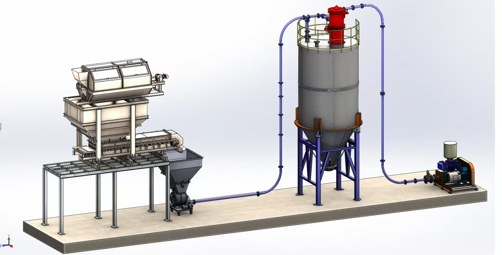 氣力輸送設(shè)備:包括風(fēng)機(jī)設(shè)備、供料設(shè)備、電氣設(shè)備、除塵設(shè)備、收集設(shè)備、管道設(shè)備、閥門設(shè)備、控制設(shè)備等,適用于稀相、濃相等各種粉料顆粒料的輸送設(shè)備、是常見的一種氣力輸送設(shè)備,主要是通過羅茨風(fēng)機(jī)或者空壓機(jī)提供高壓氣流,然后再通過倉泵和旋轉(zhuǎn)供料器把下來的料、輸送到指定的位置、一般稀相輸送系統(tǒng)的數(shù)據(jù)距離在5-300米內(nèi)、濃相距離